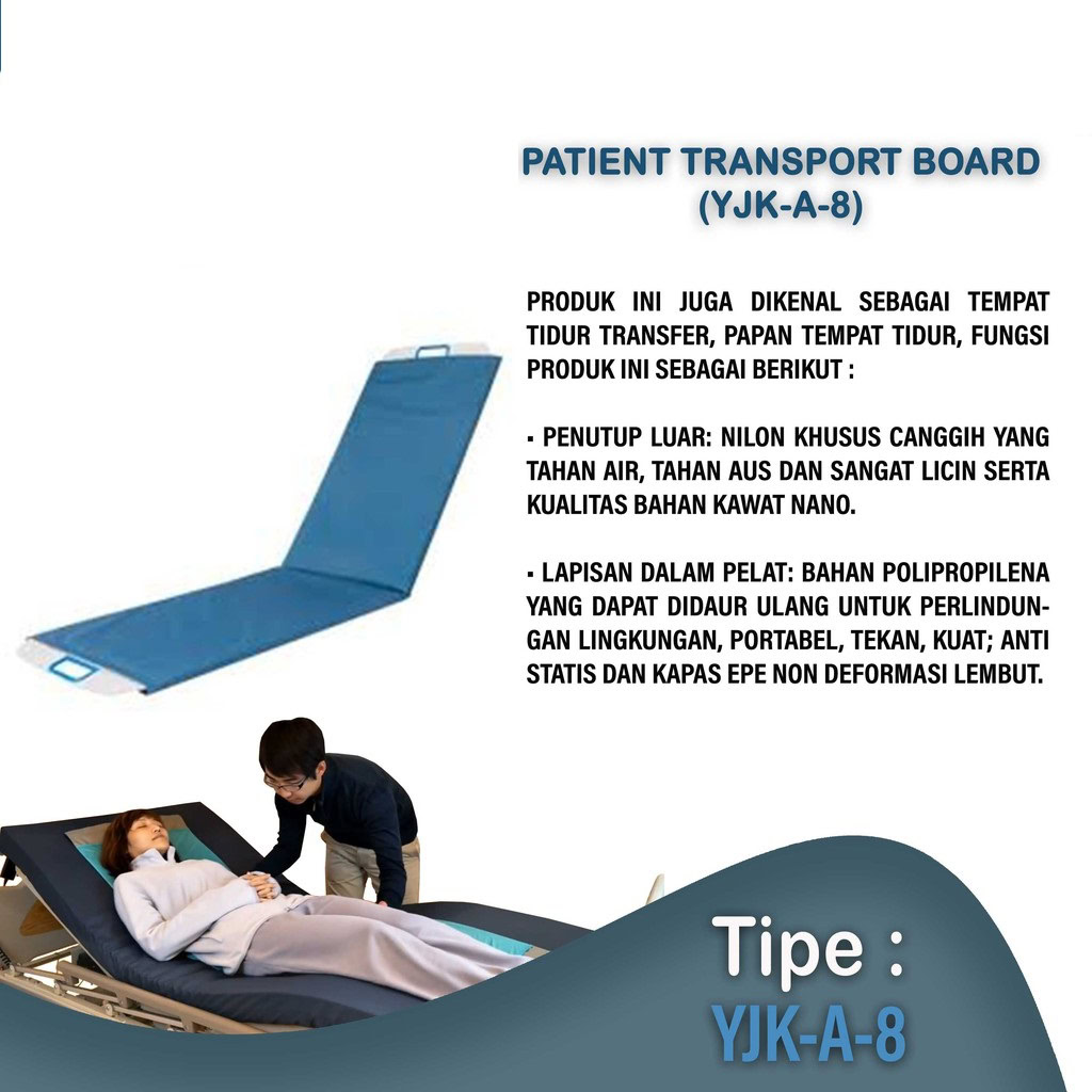 > Mudah untuk dibersihkan dan disterilisasi. Untuk perbedaan tinggi tempat tidur sesebar 15 cm, bisa menanggung beban pasien sampai 200 kg